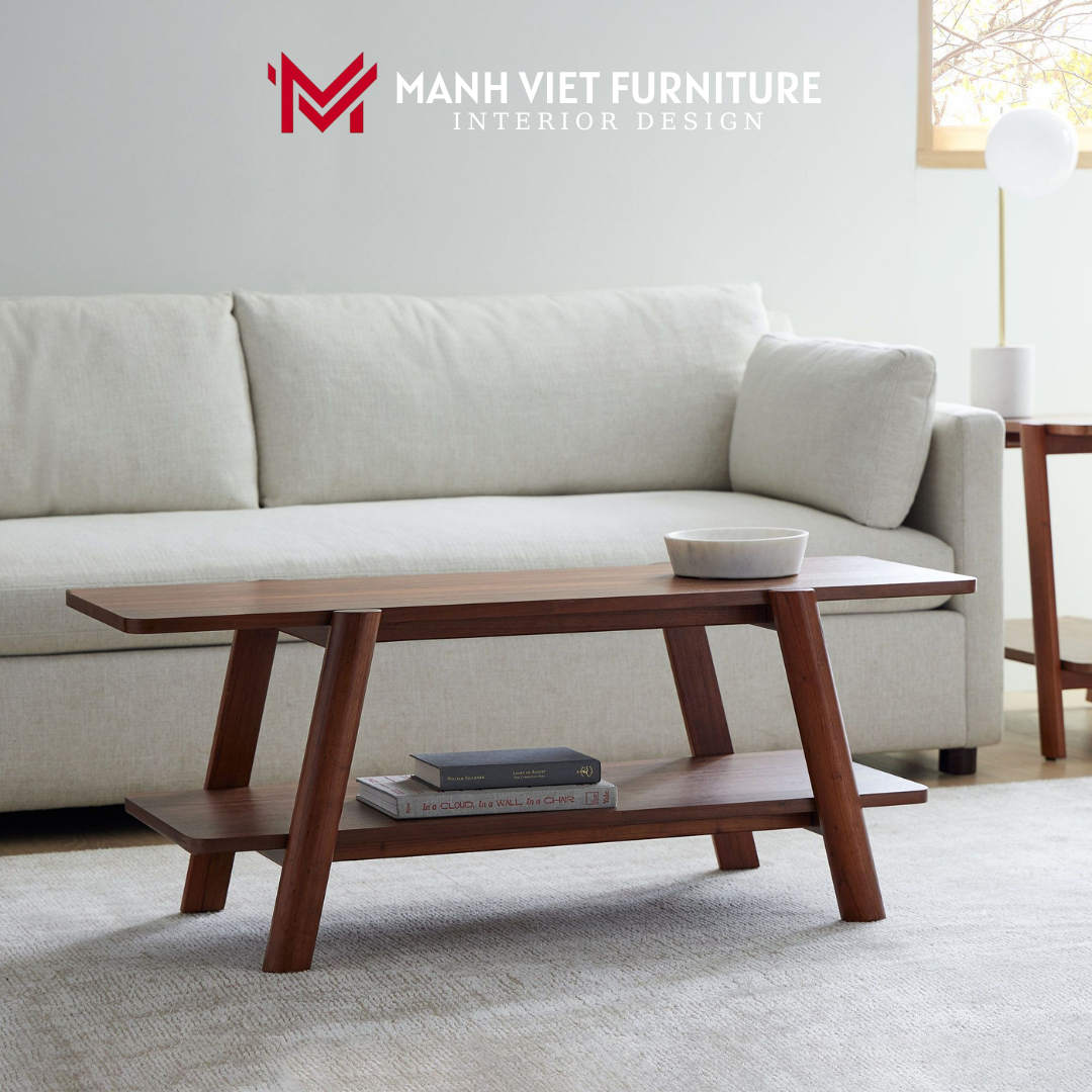 Mẫu bàn trà mang phong cách hiện đại với thiết kế 2 tầng, có phần kệ dưới chắc chắn tăng không gian sử dụng cho gia đình bạn.