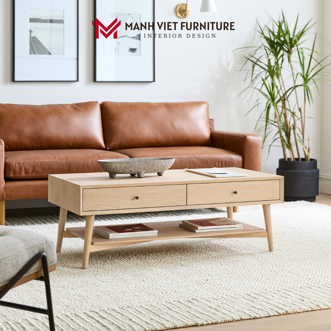 Mẫu bàn trà mang phong cách cổ điển với thiết kế 2 ngăn kéo giúp cho phòng khách của bạn luôn gọn gàng.