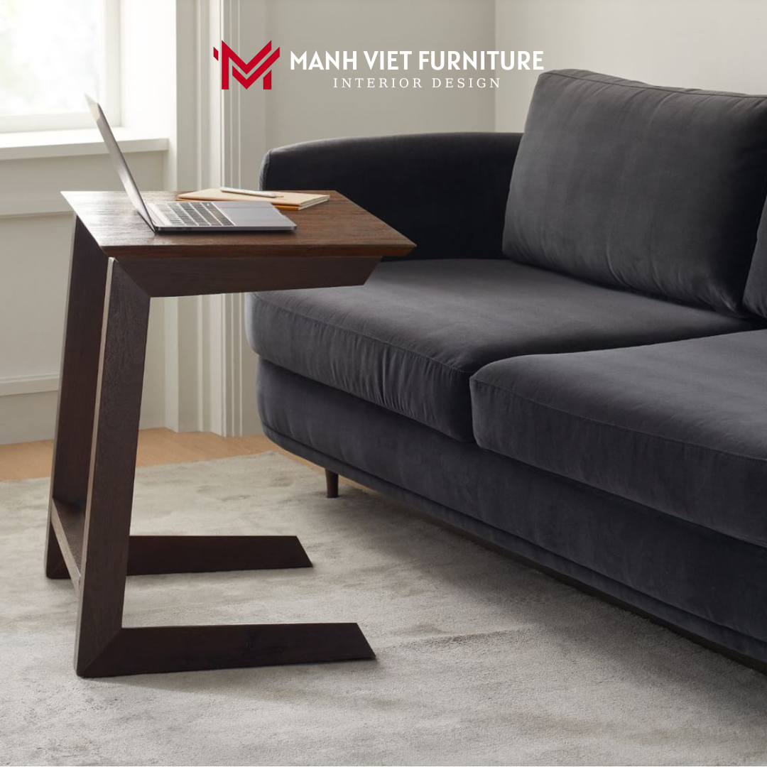 Mẫu bàn trà được thiết kế để tiết kiệm không gian, có thể để dưới ghế sofa hoặc dưới giường nhưng mặt bàn vẫn đủ rộng để có thể hoạt động như một chiếc bàn làm việc hay bàn trà thông thường.