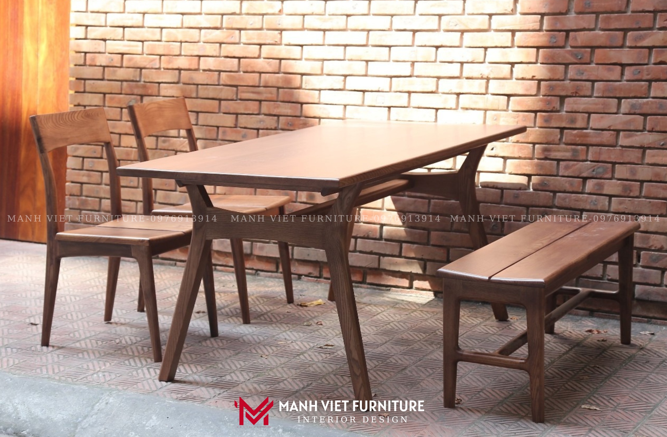 Một mẫu bàn ăn ghế ăn mang phong cách hiện đại nhưng được hoàn thiện vô cùng tỉ mỉ, trau chuốt từng đường nét, những thớ gỗ chắc nịch vân cuồn cuộn tạo nên sức hút mãnh liệt cho bộ bàn ghế.