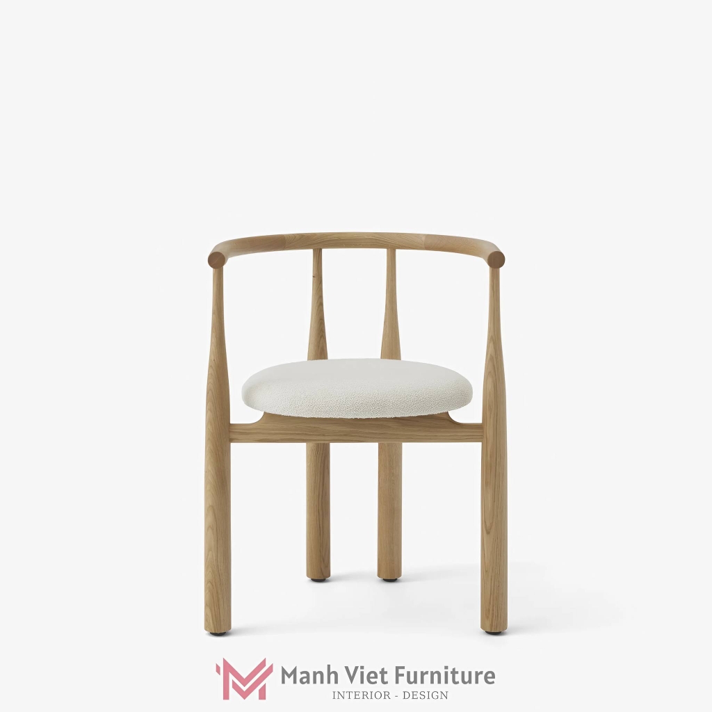 Ghế có phần tựa lưng hình bán nguyệt, được tính toán kỹ lưỡng để ôm trọn phần lưng người sử dụng, tạo sự nâng đỡ thoải mái dù không có lớp đệm lưng.