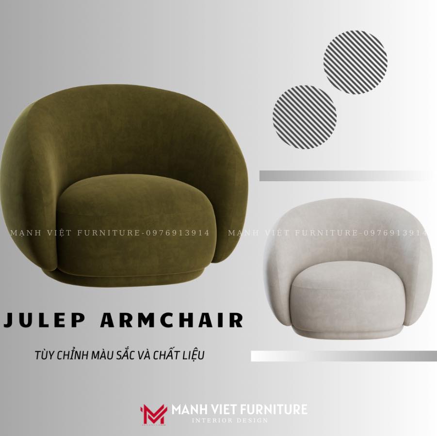 Mang hơi hướng những năm 1940, Ghế Julep Armchair có những đường cong mời gọi bạn ngồi xuống và ở lại một lúc.