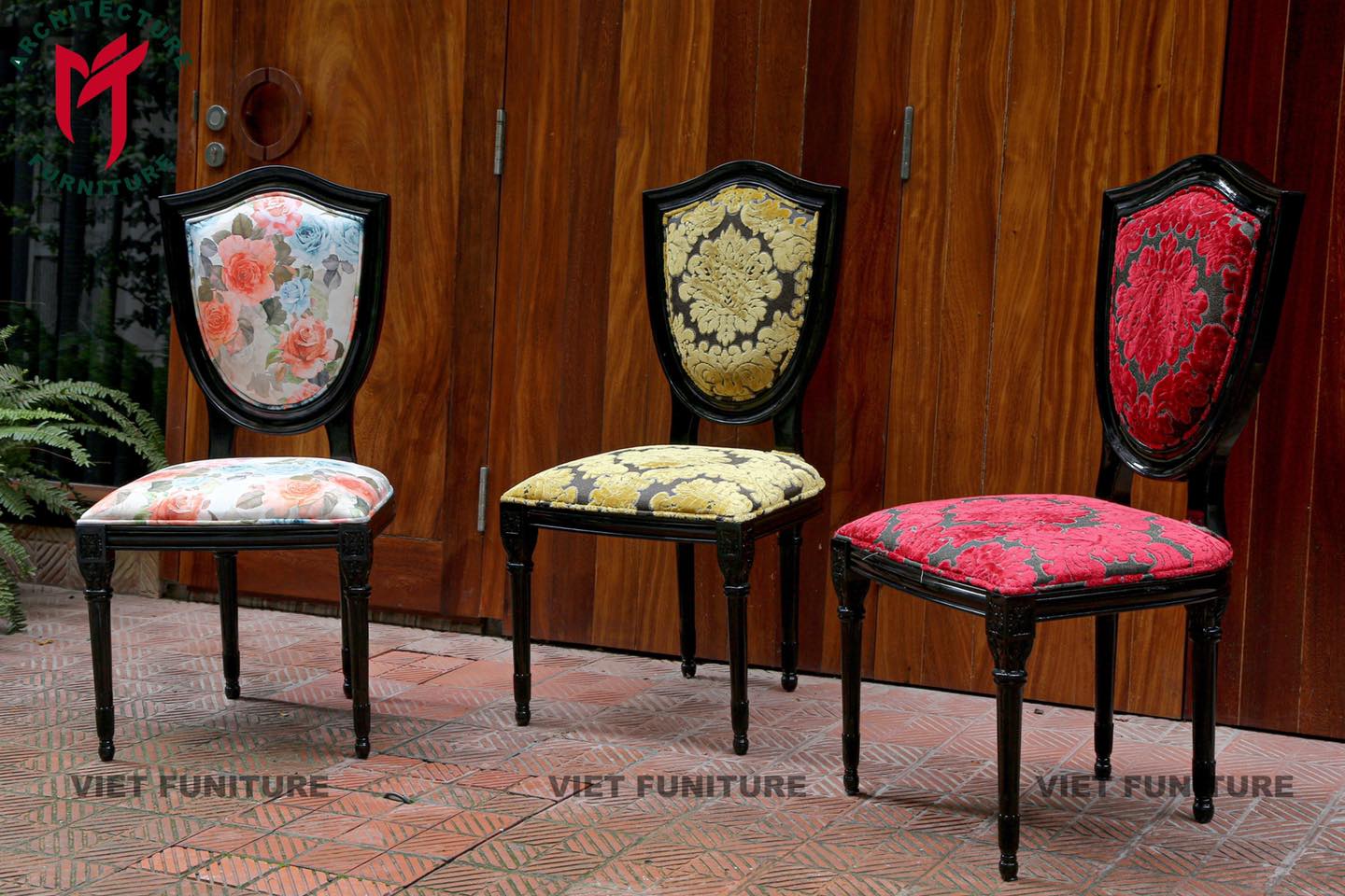 Mẫu ghế được lấy cảm hứng từ chiếc ghế Louis mang phong cách cổ điển, chân ghế được chạm khắc tinh xảo tương tự mẫu ghế Louis. Thành ghế được thiết kế thay hình vòm như mái nhà, mềm mại nhưng cực kỳ sang trọng. Nhà hàng cao cấp, khách sạn, nhà ở chung cư hay mặt đất đều có thể sử dụng mẫu ghế ăn này. Đa dạng về chất liệu, bạn có thể lựa chọn bọc vải nỉ trơn hoặc họa tiết cho tổ ấm, nhà hàng, khách sạn của mình.